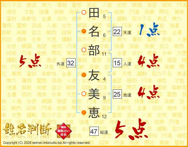 田名部友美恵さんの総運は47画の5点!