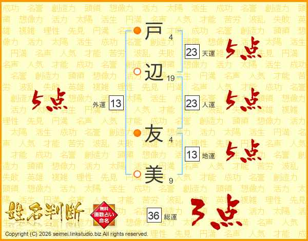 戸辺友美さんの外運は13画の5点!