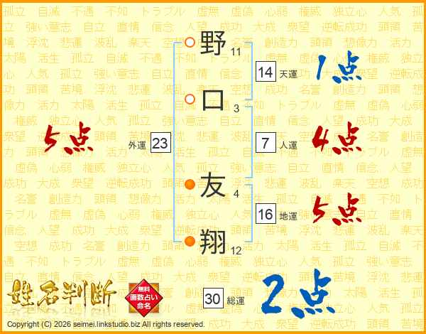 野口友翔さんの総運は30画の2点!