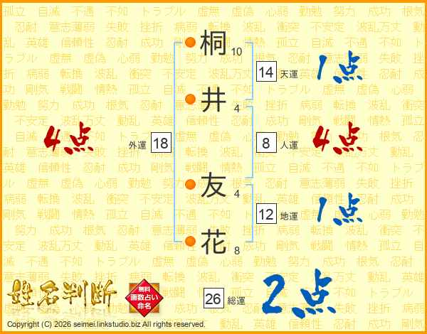 桐(10画)井(4画) 友(4画)花(8画)