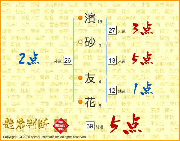 濱(18画)砂(9画) 友(4画)花(8画)