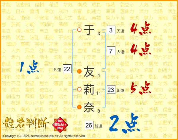 于友莉奈さんの総運は26画の2点!