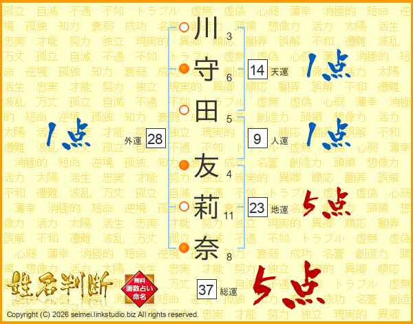 川守田友莉奈さんの総運は37画の5点!