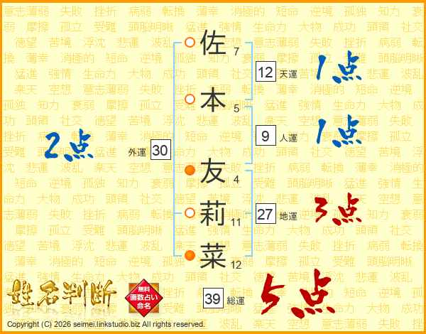 佐本友莉菜さんの総運は39画の5点!