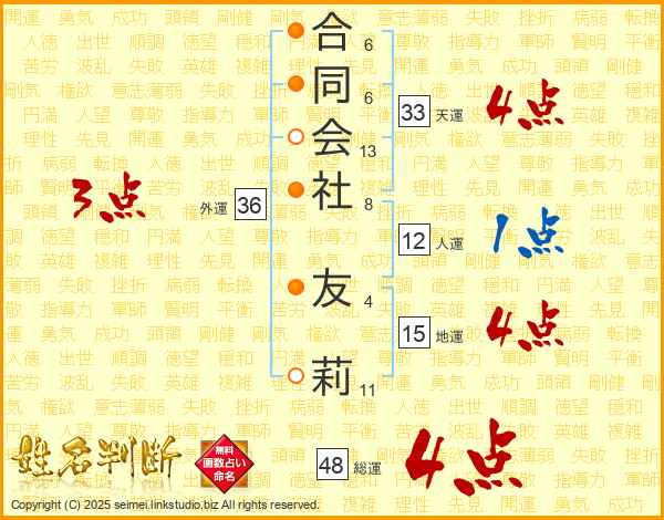合同会社友莉さんの総運は48画の4点!