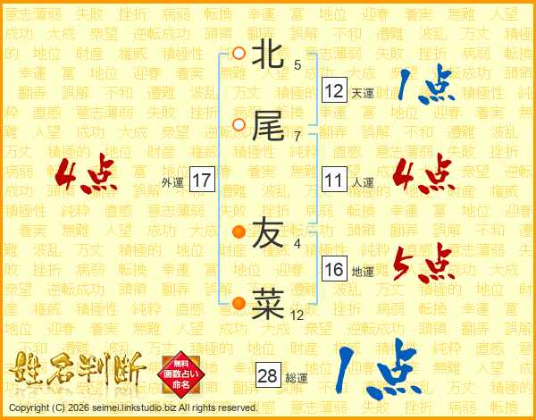 北尾友菜さんの総運は28画の1点!