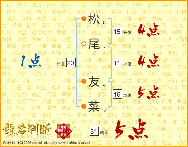 松尾友菜さんの総運は31画の5点!