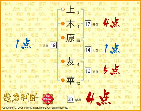 上木原友華さんの天運は17画の4点!
