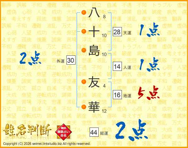 八(8画)十(10画)島(10画) 友(4画)華(12画)