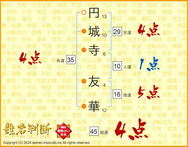 円城寺友華さんの総運は45画の4点!