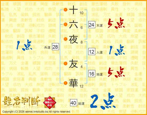 十六夜友華さんの総運は40画の2点!