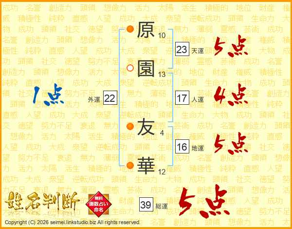 原園友華さんの総運は39画の5点!