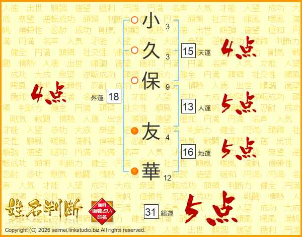 小久保友華さんの天運は15画の4点!