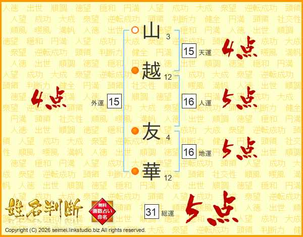 山越友華さんの外運は15画の4点!