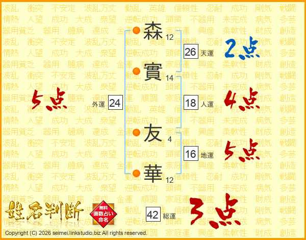 森實友華さんの天運は26画の2点!