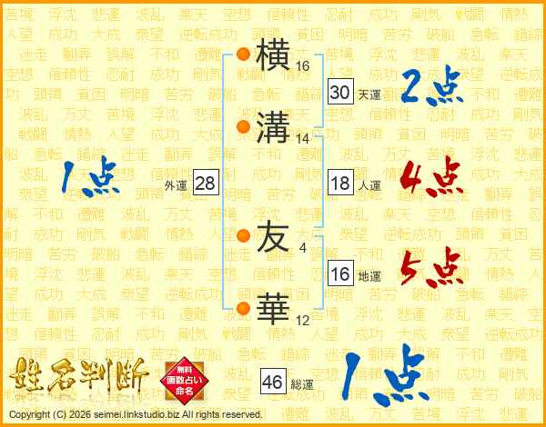 横溝友華さんの総運は46画の1点!