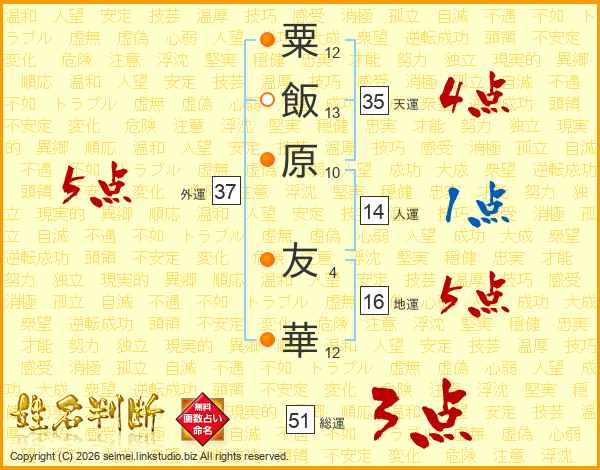 粟飯原友華さんの外運は37画の5点!