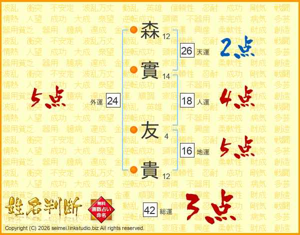 森實友貴さんの天運は26画の2点!