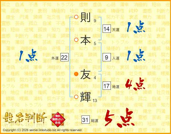 則本友輝さんの総運は31画の5点!