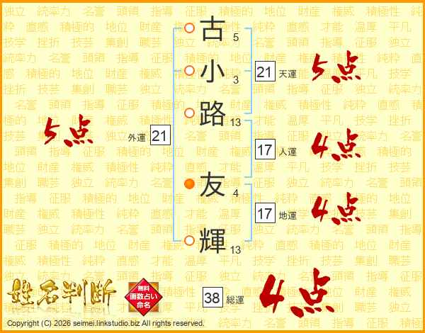 古小路友輝さんの総運は38画の4点!