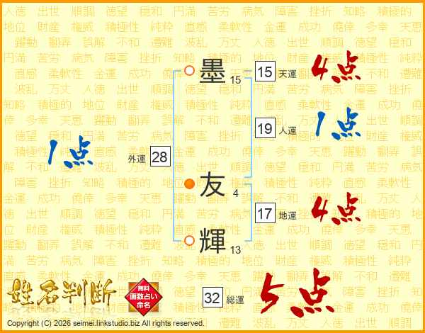 墨友輝さんの総運は32画の5点!