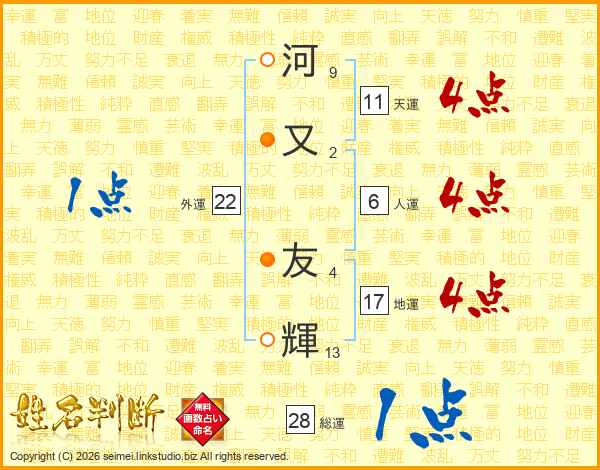 河又友輝さんの地運は17画の4点!