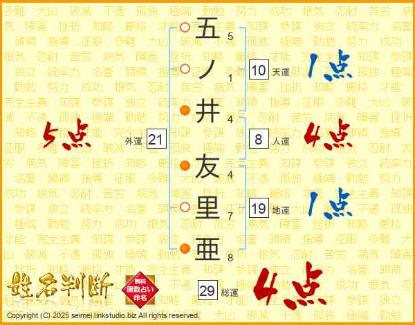 五ノ井友里亜さんの総運は29画の4点!