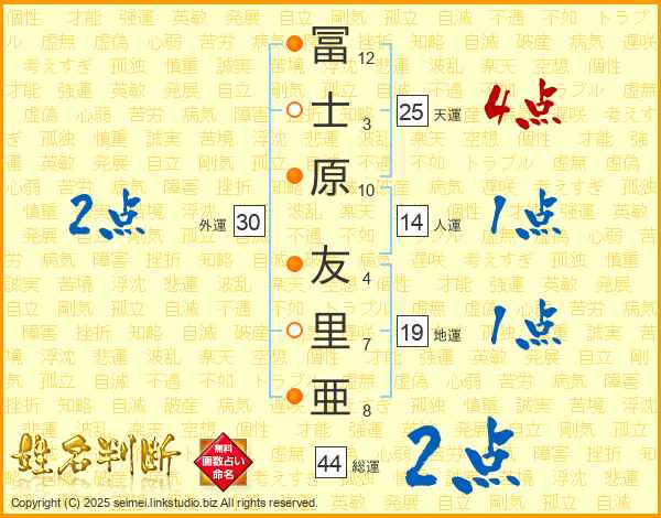 冨士原友里亜さんの総運は44画の2点!
