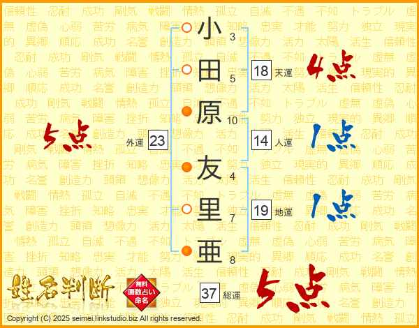 小田原友里亜さんの総運は37画の5点!