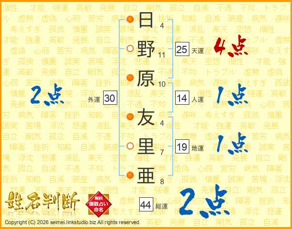 日野原友里亜さんの総運は44画の2点!