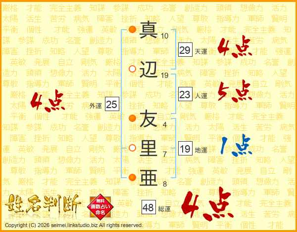 真辺友里亜さんの総運は48画の4点!
