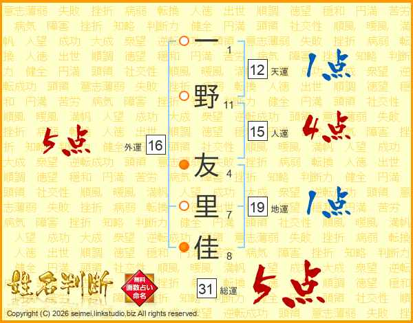 一野友里佳さんの総運は31画の5点!