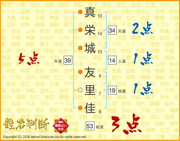 真栄城友里佳さんの総運は53画の3点!