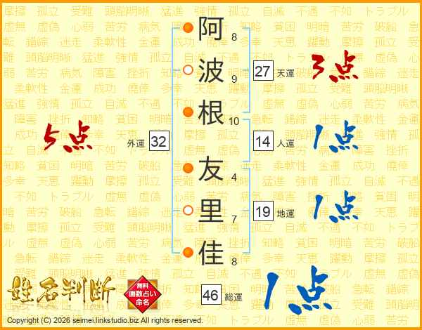 阿波根友里佳さんの総運は46画の1点!
