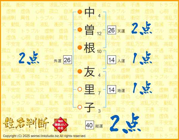 中曽根友里子さんの総運は40画の2点!