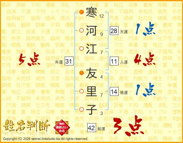 寒(12画)河(9画)江(7画) 友(4画)里(7画)子(3画)