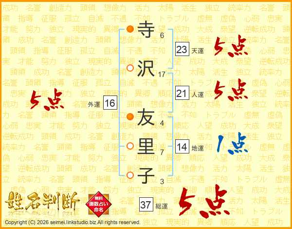 寺(6画)沢(17画) 友(4画)里(7画)子(3画)