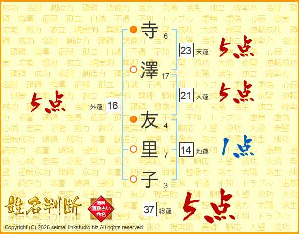 寺(6画)澤(17画) 友(4画)里(7画)子(3画)