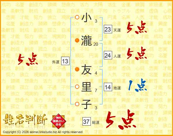 小瀧友里子さんの外運は13画の5点!