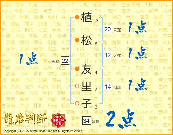 植(12画)松(8画) 友(4画)里(7画)子(3画)