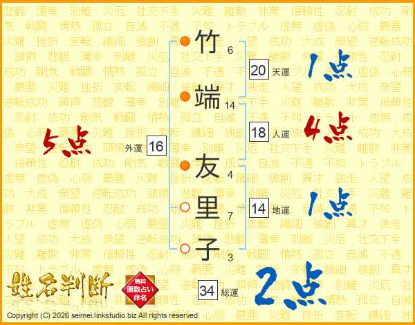 竹端友里子さんの総運は34画の2点!