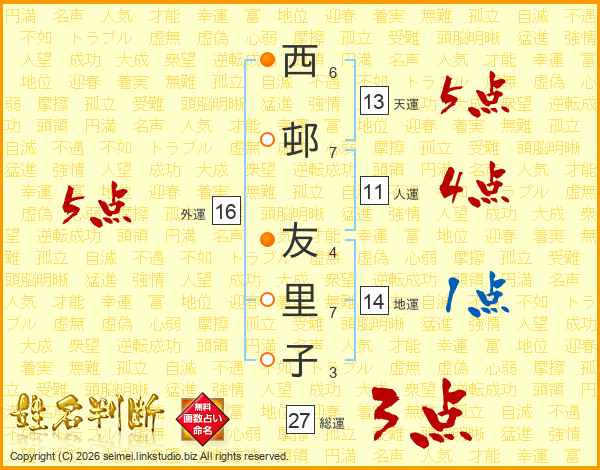 西邨友里子さんの外運は16画の5点!