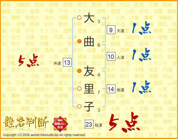 大曲友里子さんの総運は23画の5点!