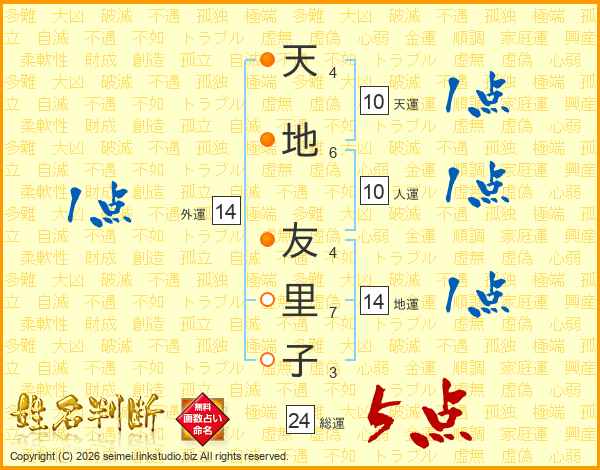 天(4画)地(6画) 友(4画)里(7画)子(3画)