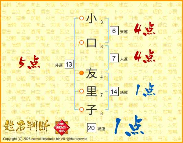小口友里子さんの総運は20画の1点!