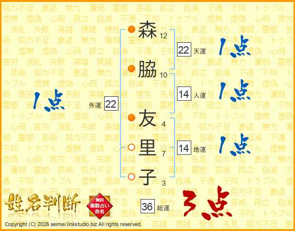 森脇友里子さんの総運は36画の3点!
