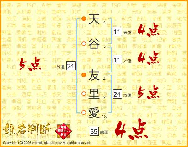天谷友里愛さんの総運は35画の4点!