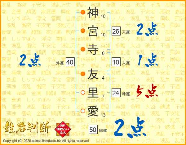 神宮寺友里愛さんの総運は50画の2点!