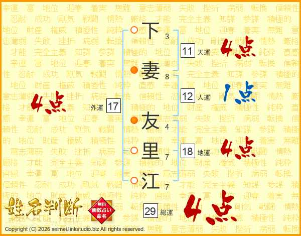 下妻友里江さんの総運は29画の4点!