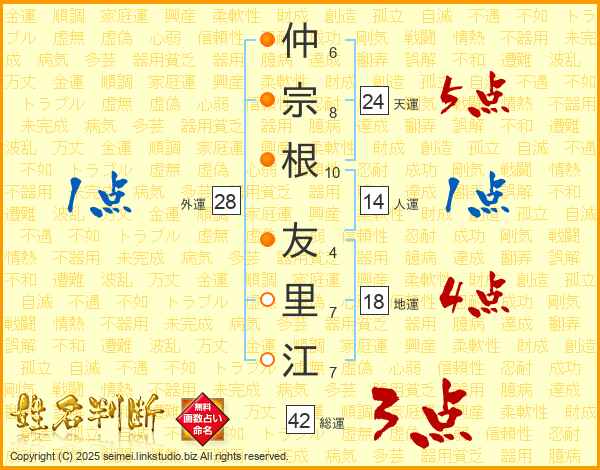 仲宗根友里江さんの総運は42画の3点!
